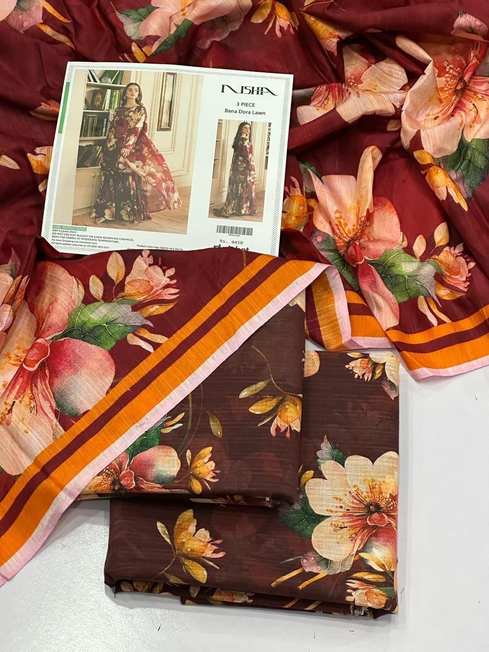 Top Fabric: Digital Printed Bana Dora Lawn Shirt.